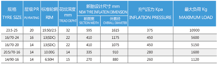適用于各種自卸汽車、鏟運(yùn)機(jī)和裝載機(jī)在多種條件下作業(yè),花紋耐切割、耐磨、牽引性能優(yōu)良